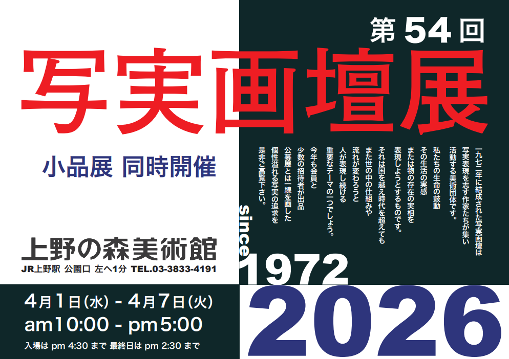 2024年4月1日より、第52回写実画壇展を開催いたします。